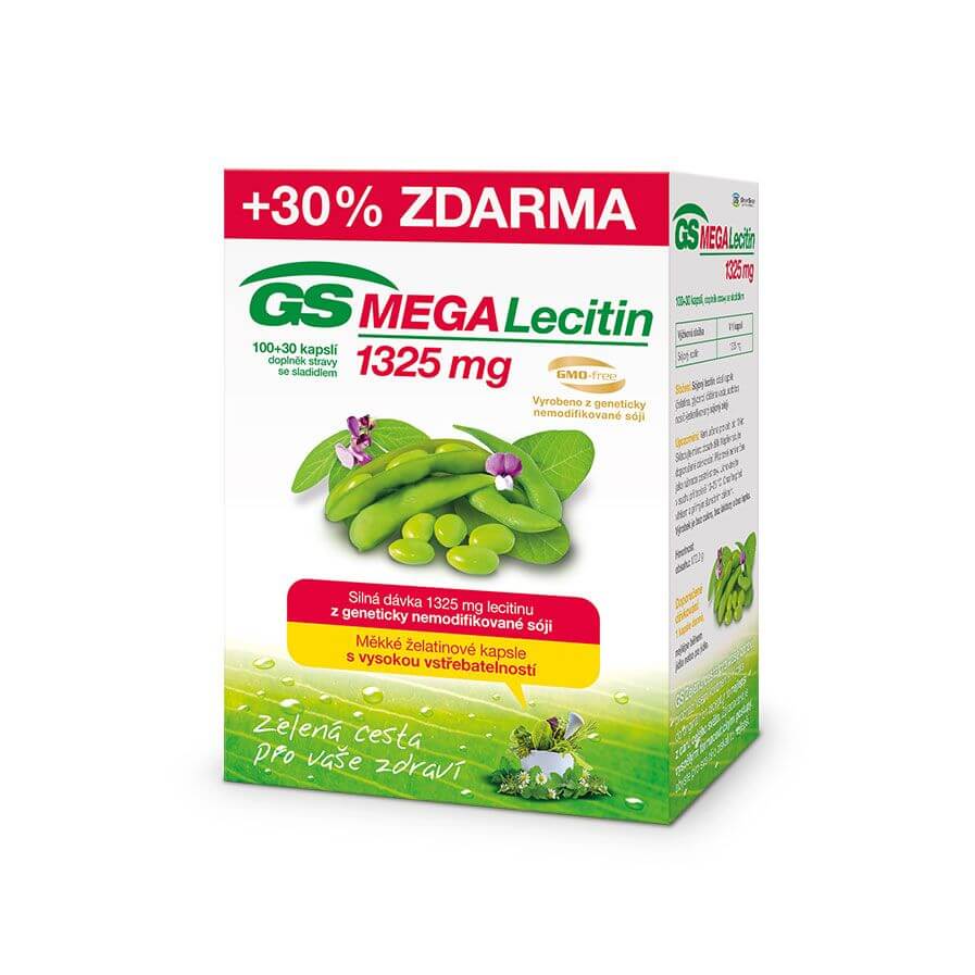 GS MegaLecitin obsahuje silnou dávku 1325 mg lecitinu, vyrobeného z geneticky nemodifikované sóji, ve formě měkkých želatinových kapslí, které zajišťují vysokou vstřebatelnost. S obsahem kyseliny linolové pro správnou hladinu cholesterolu.