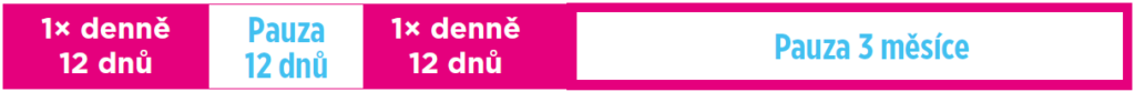 1× denně 4 ml po dobu 12 dnů, potom 12 dnů vynechat a pokračovat opět 1× denně 4 ml – viz dávkovací schéma.