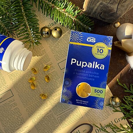 Doplněk stravyGS Pupalka pro krásu Vaší pleti a hormonální rovnováhu. Doplněk stravy obsahuje 500 mg EXTRA VIRGIN pupalkového oleje obohaceného o vitamin E pro krásnou a mladistvou pleť. Olej z pupalky dvouleté napomáhá k hormonální rovnováze a komfortu před menstruací a během menstruace.