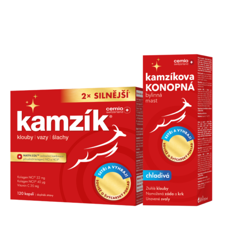 Výhodný balíček na klouby poskytuje péči zevnitř i zvenku. Cemio Kamzík® pečuje díky přírodním kolagenům a vitaminu C o klouby, vazy a šlachy zevnitř. Kamzíkova konopná bylinná mast uleví unaveným svalům a kloubům.